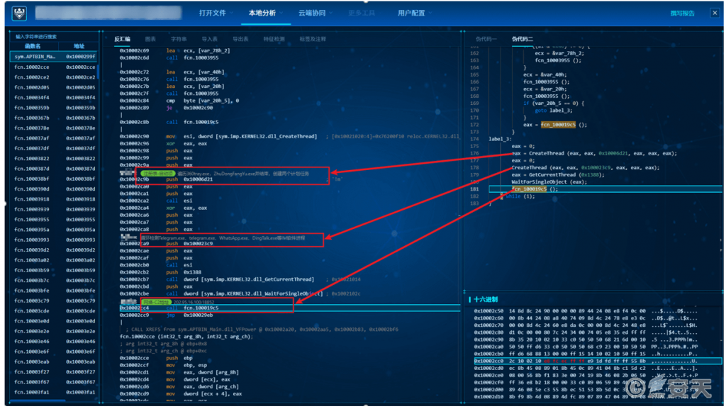 APTBIN_Main.dll creates two threads, whose functions include terminating security software processes and creating scheduled tasks. It then connects to the C2 server 202.95.16.100:18852 to download the VFPower_32.dll file.