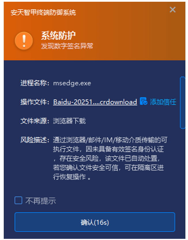 Figure 5-4 Sending Risk Warnings for Abnormal Downloaded Installation Packages