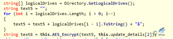 Figure 2‑24 AES encryption function - When the response to the request contains “cme-update”, cmd.exe is called and the base64-encrypted command (the command after “cme-update |”) in the request is executed. And the result of the execution is encrypted by AES as the verification.
